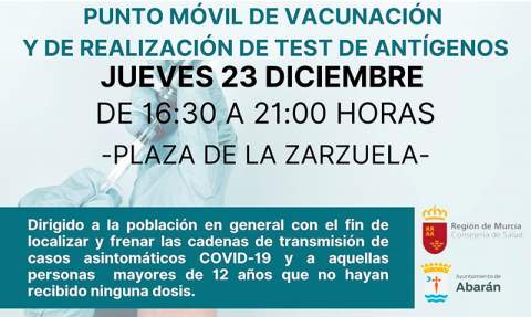 481 test de antígenos realizados este jueves por la tarde en Abarán y 37 primeras dosis