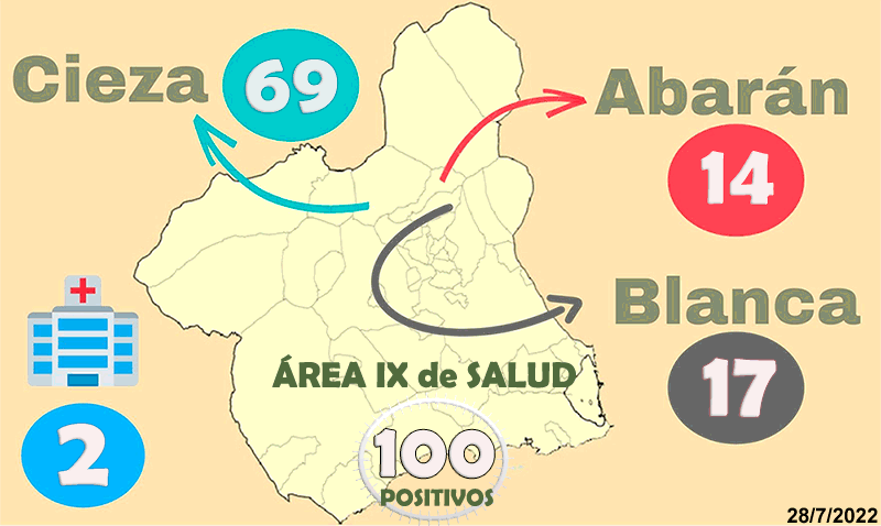 Así, con los datos actualizados a fecha 22 de julio, Cieza cuenta ahora con 69 positivos (cifra que repite por tercer día consecutivo), Abarán con 24 y Blanca con 24.