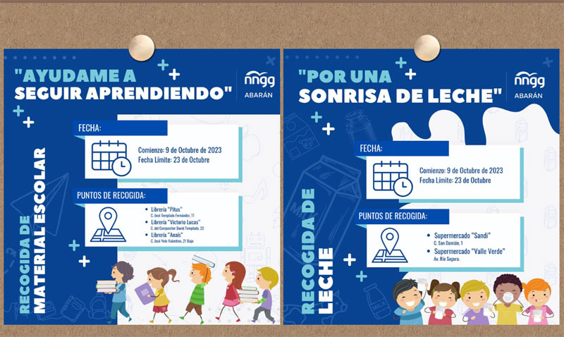 Un año más, NNGG del Partido Popular ha puesto en marcha dos campañas solidarias denominadas "Ayúdame a seguir aprendiendo" y "Por una sonrisa de leche", que ayudarán a muchas familias de nuestro municipio.